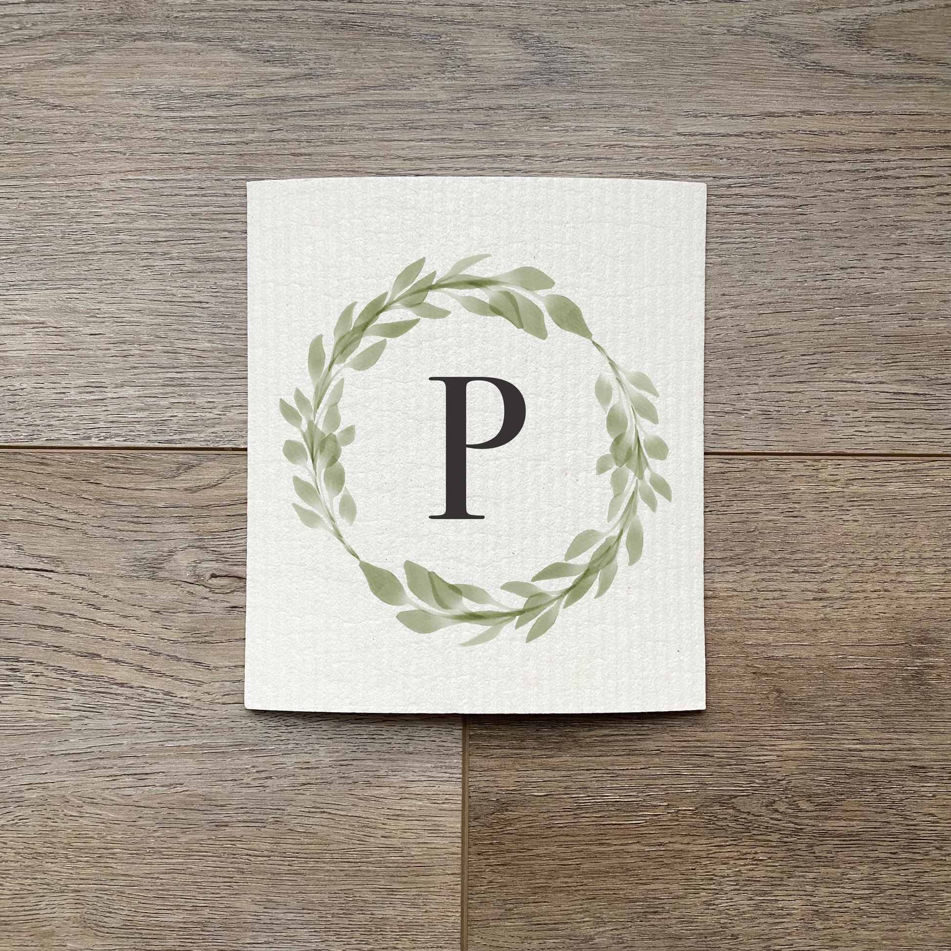 Custom Initial Eucalyptus Wreath - Swedish Dish Cloth